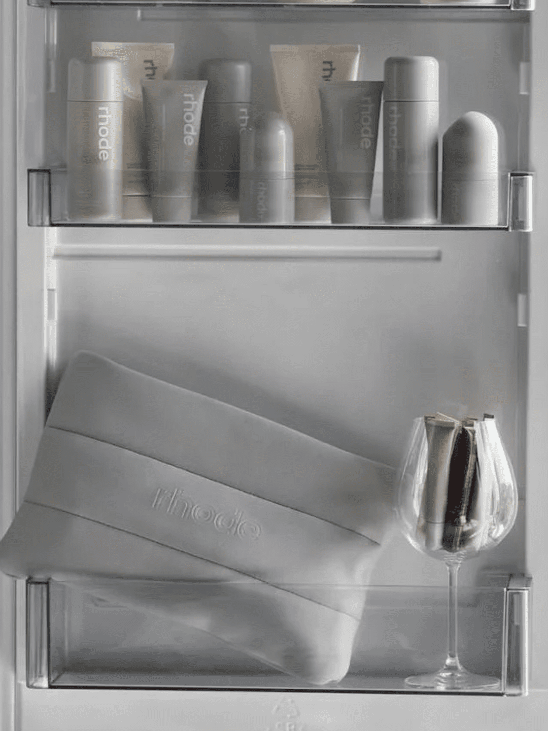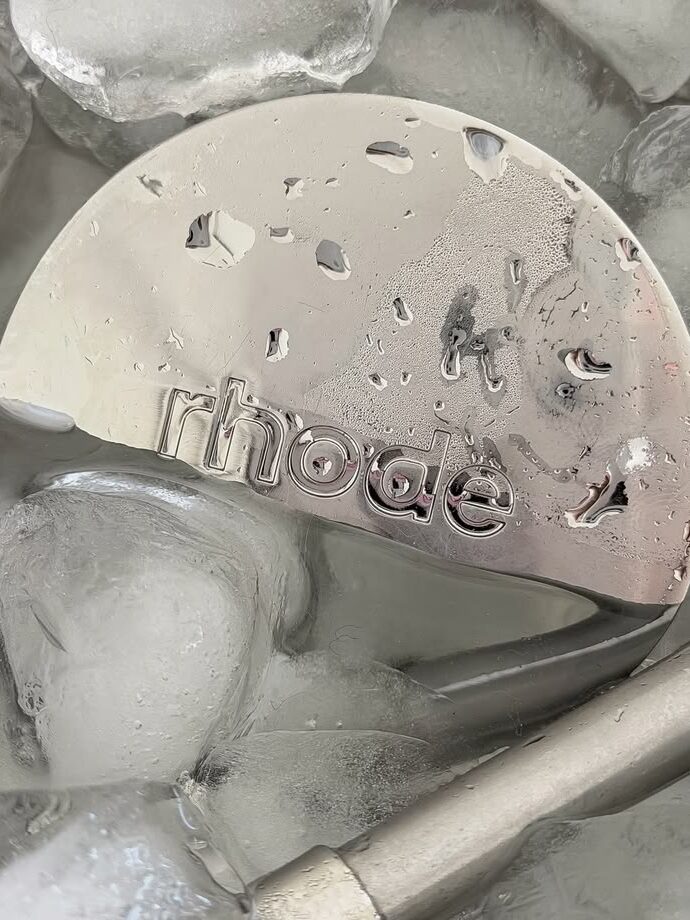 Chrome works here because it mirrors the product itself. Glazed, dewy, reflective skin. The branding doesn’t fight the formula, it amplifies it.